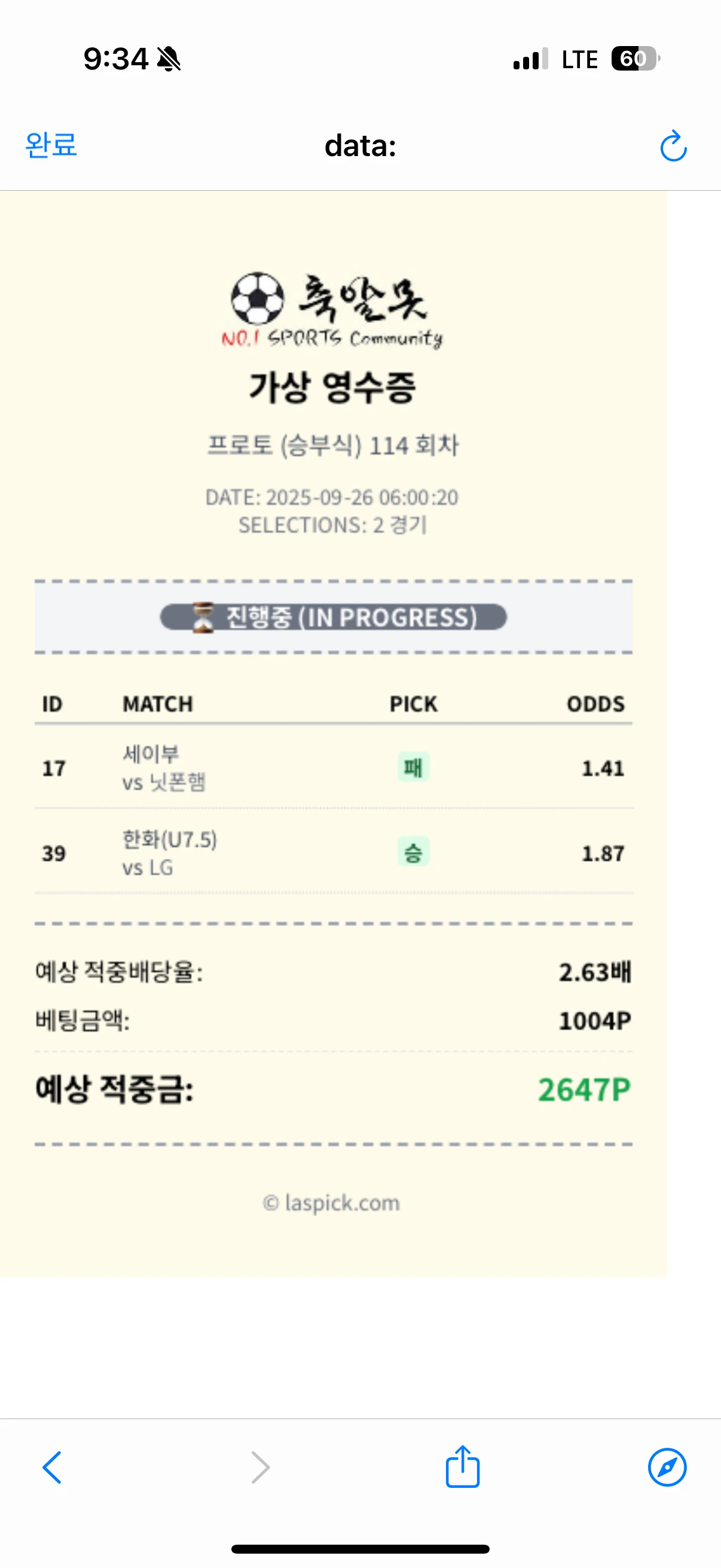 10월1일 이따 새벽에 축구픽 단폴 딱 하