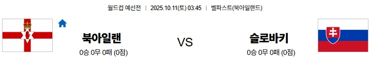 10월11일 03:45 북아일랜드 슬로바키아 월드컵예선전 스포츠분석,스포츠중계