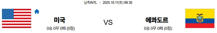 10월11일 09:30 미국 에콰도르 남축INTL 스포츠분석,스포츠중계