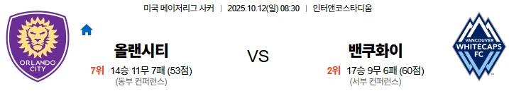 10월12일 08:30 올랜도시티 밴쿠버 MLS 스포츠분석,스포츠중계
