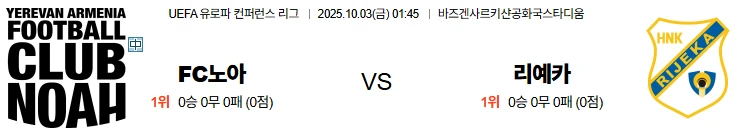 10월3일 01:45 FC노아 리예카 UECL 스포츠분석,스포츠중계
