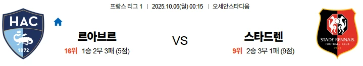 10월6일 00:15 르아브르 스타드렌 리그1 스포츠분석,스포츠중계