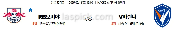 9월13일 19:00 오미야 V바렌나가사키 J2리그 스포츠분석 축알못 토토사이트