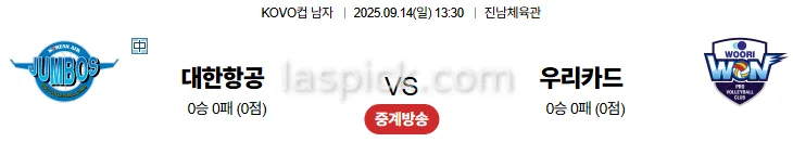 9월14일 13:30 대한항공 우리카드 국내배구 스포츠분석 축알못 토토사이트
