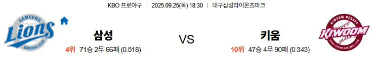 9월25일 18:30 삼성 키움 스포츠분석,스포츠중계